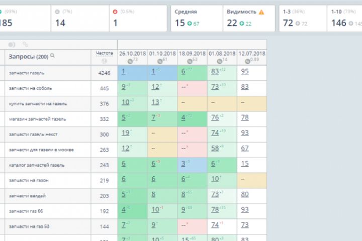 По итогам 4 месяцев работы над сайтом в топ-10 было выведено 145 запросов.
