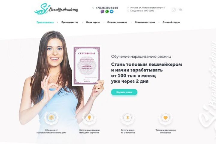 Лендинг - Обучение наращиванию ресниц