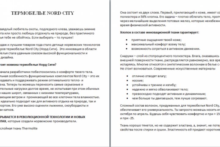 ТЕРМОБЕЛЬЕ NORD CITY