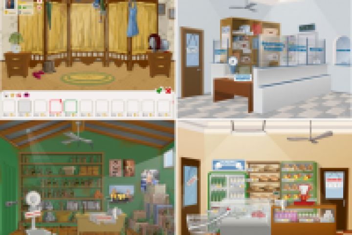 Создание графики в Adobe Flash для игры Бабки с тележками. Фоновые интерьеры ширма для смены одежды, пункт приема, гастроном, почта.