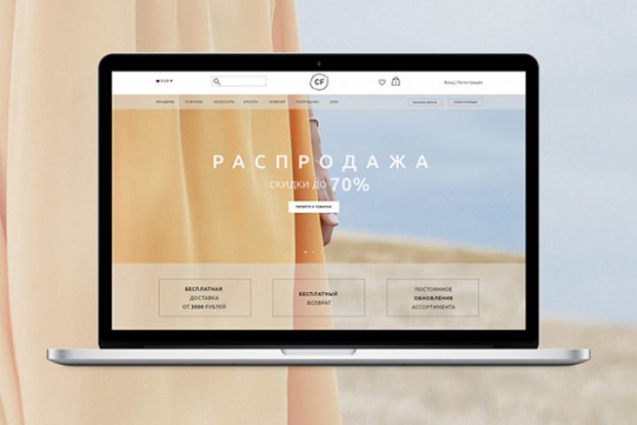 Дизайн для интернет-магазина молодежной одежды Cotton Field. Стиль плоский с элементами Fluent Design для создания эффекта легкости, воздушности.