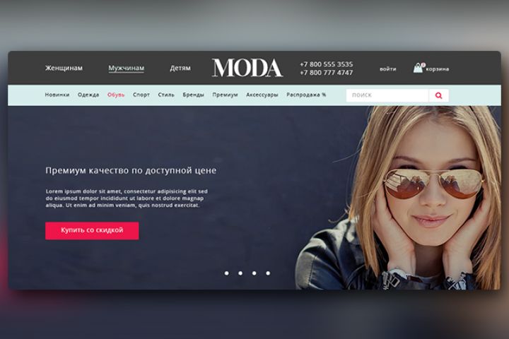 Landing для магазина по продаже одежды, требовалось создать модный современный и лёгкий, для восприятия дизайн.
