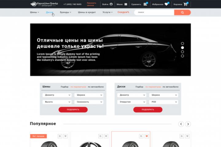 Интернет магазин по продаже шин и дисков под АБ тестирование