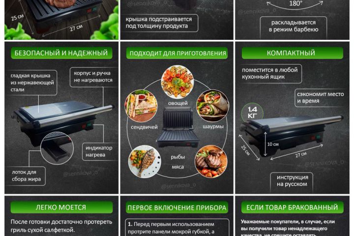 Дизайн карточки для товара "Электрический мини гриль" - 9 слайдов