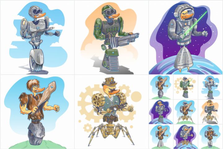 Предлагаю вашему вниманию интересный проект. Вы можете увидеть 5 воинствующих уточек! И они все разбираются на запчасти и собираются обратно! А порядок частей и их конфигурацию вы определяете сами! Телеграмм: https://t.me/Cyber_Ducks