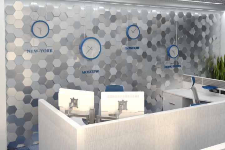 Дизайн стены состоящий из декоративных элементов и покрытый краской цвета металлик.