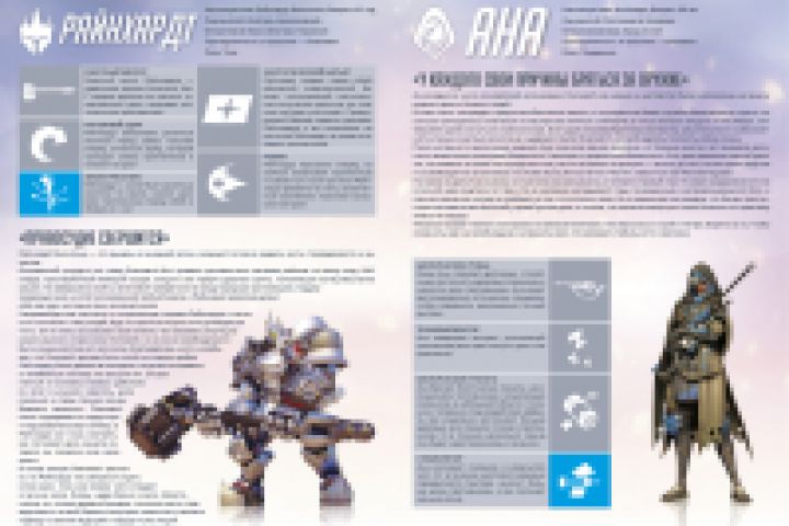 Один из из разворотов будущего журнала, посвященный героям компьютерной игры Overwatch.