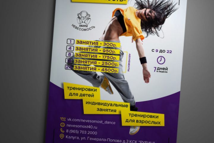 Листовка для танцевальной студии "Невесомость"
