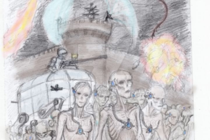 Малоцветная иллюстрация к рассказу (постапокалипсис, фантастика). Карандаш, акварель.