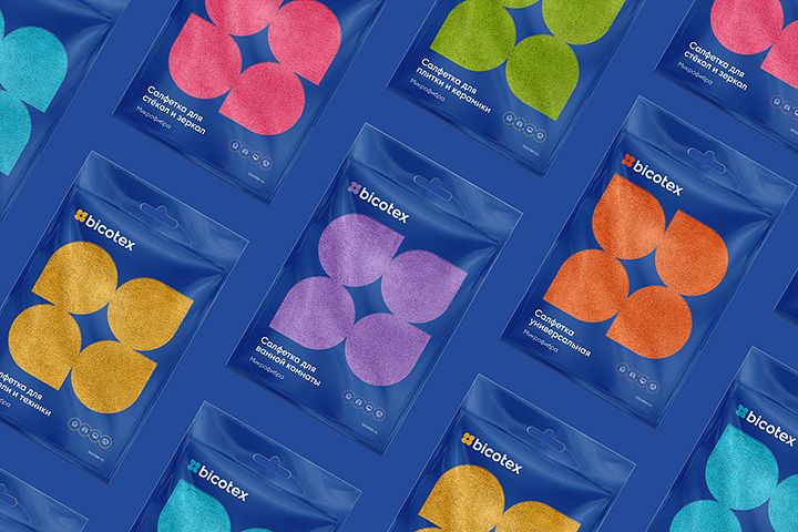 Чтобы выделиться среди многочисленных конкурентов, при разработке логотипа, фирменного стиля и упаковки, было принято решение сделать основной упор не на структуру микрофибры, а на её основные свойства, такие как чистота (блеск) и впитываемость. Построенный на основе капли, простой и лаконичный логотип, легко трансформируется в целую систему дополнительных символов, которые удачно используются в упаковке продукции компании bicotex. Фирменные капли стали основными элементами для всей визуальной коммуникации бренда. Вся айдентика построена на простых и узнаваемых элементах, благодаря чему стиль прост в применении и гибок, а каждый носитель всегда говорит о принадлежности к бренду.
