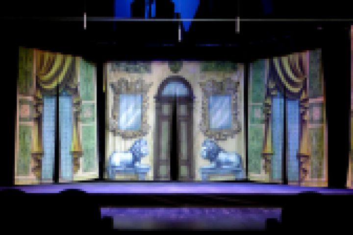 Декорации к спектаклю " Слуга двух господ " реставрация: восстановление цвета, коррекция фрагментов (персонажей, мебели, зданий) , а так же создания объёма с помощью аэрографа.