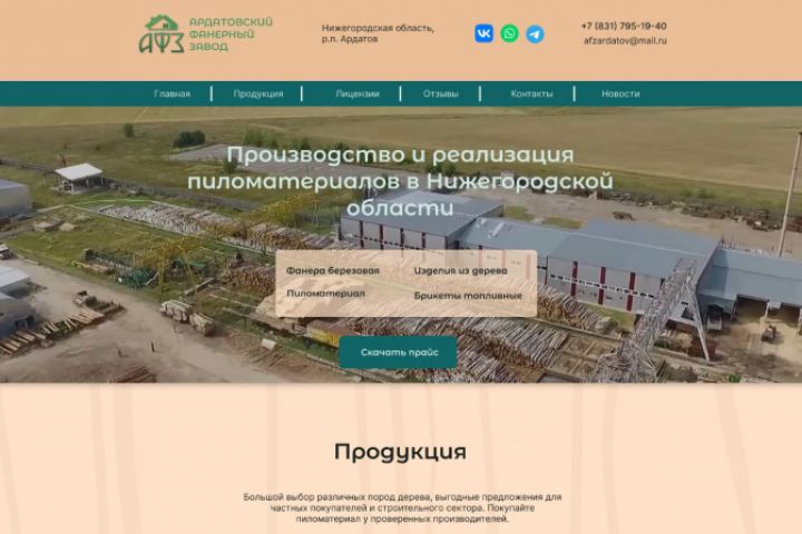 Дизайн лендинга завода пиломатериалов АФЗ Работа по брифу заказчика