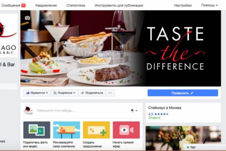 Создание, ведение и продвижение групп в социальных сетях для ресторана в течение 2,5 лет.
