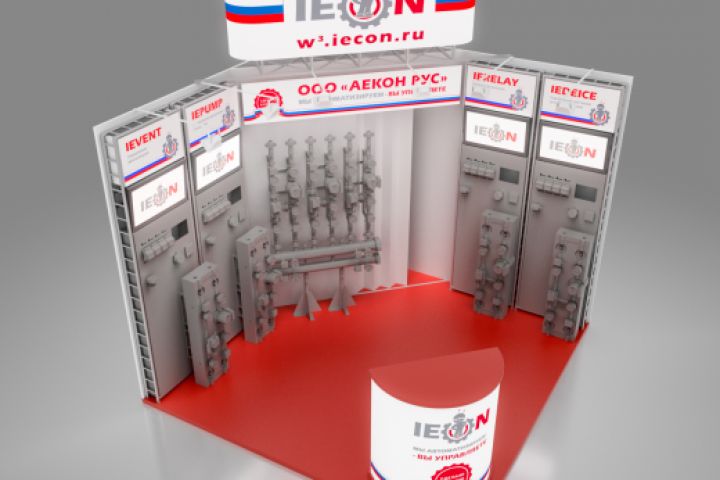 Разработка выставочного стенда для промо-мероприятий компании IECON. В итоге был сделан макет проекта в 3D-формате и макеты рекламных баннеров для полиграфической печати. Программы: моделирование, материалы/шейдеры, визуализация - Blender 2.7.x / Cycles; сведение / постобработка - Photoshop; макеты для печати - Xara Photo & Graphic Designer.