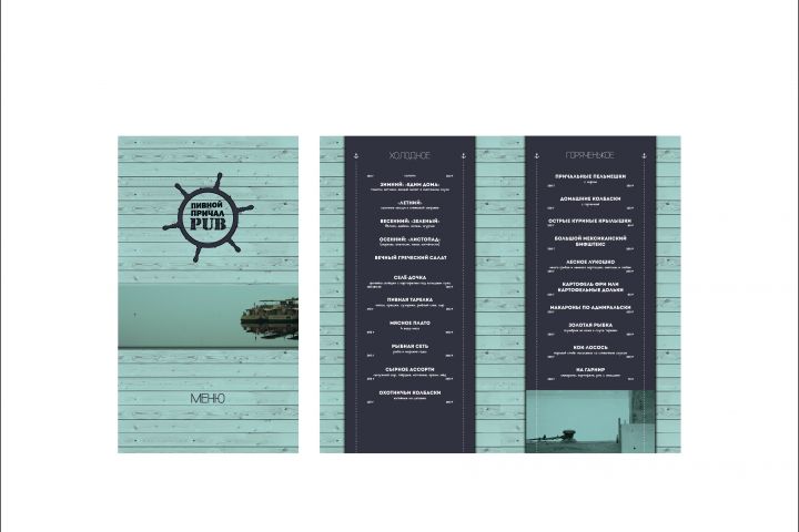 Были выбраны томные и богатые цвета, в то же время ассоциирующиеся с водой и туманом. Словно в непогоду, когда время замирает и приглашает людей встречаться за столами, историями и воспоминаниями, наслаждаясь вкусом горячительных напитков и свежеприготовленной едой. Фактура дерева напоминает о лодках и местах, от которых путь их начинается. И к которым они причаливают. А памятные фото из путешествий хозяев бара зовут в путешествие внутренней тишины и встрече в рассказе о былых свершениях и видениях.