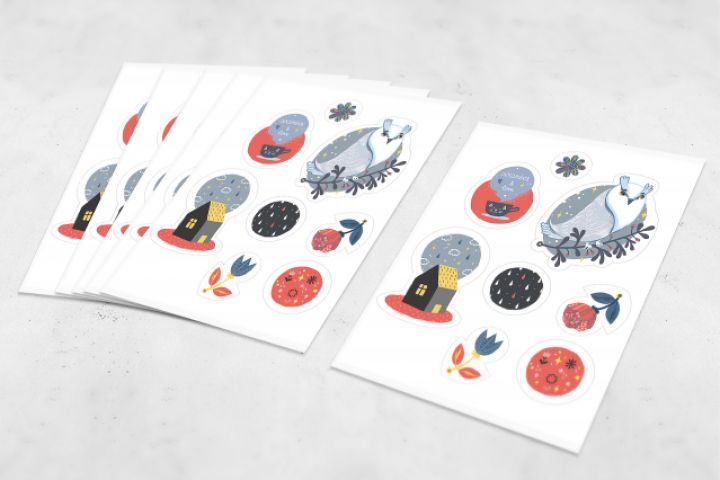 Stickers for ceramics online store with specific symbols. Raster, digital paint.