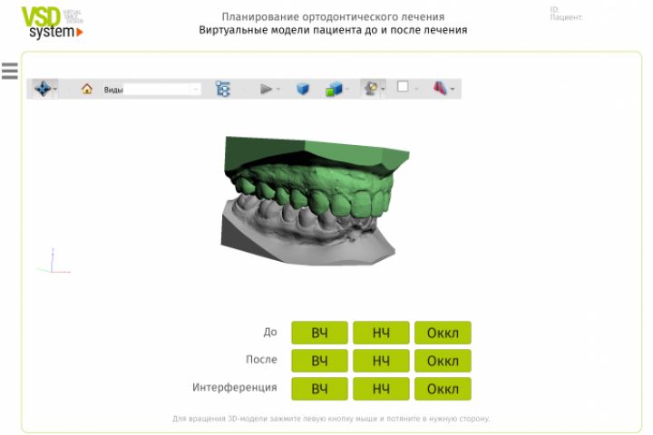 Работа с трехмерными моделями челюстей пациентов (верх-низ, до-после)