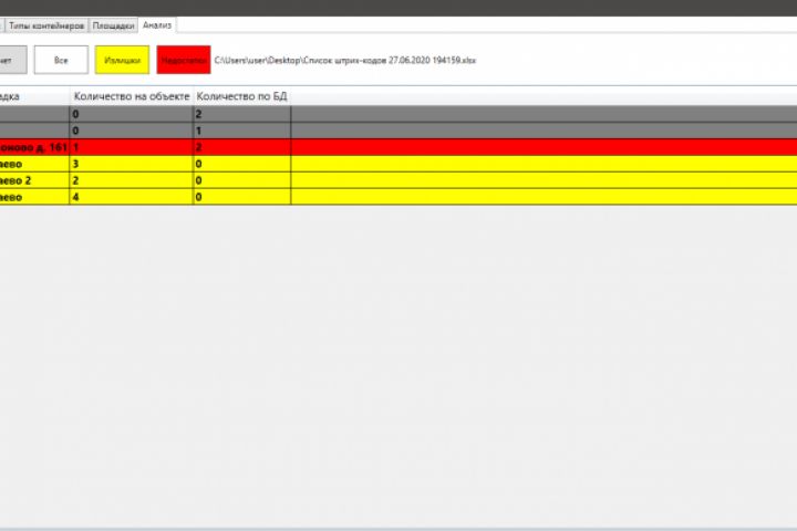 - позволяет импортировать информацию с терминала сбора данных, и проводить анализ расхождения информации по БД/по факту