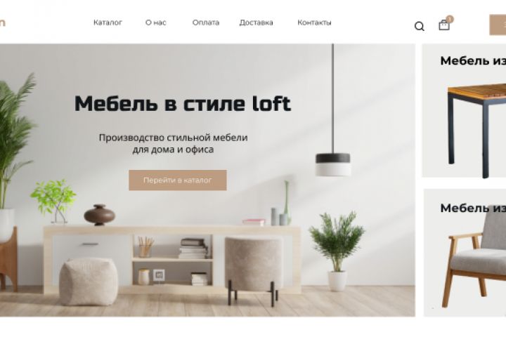 Интернет-магазин лофт-мебели "под ключ". Дизайн и верстка на Wordpress. Наполнение каталога. Первичная seo-оптимизация