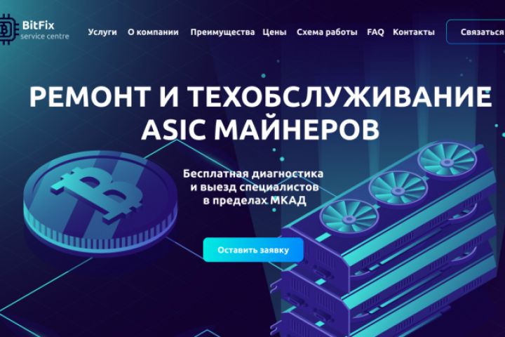 Разработка лендинга по ремонту асик-майнеров. Индивидуальный дизайн. Верстка на WordPress