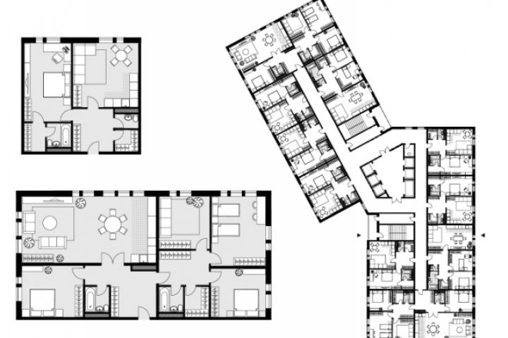 Планировка квартиры с зонированием для многоэтажного жилого дома.