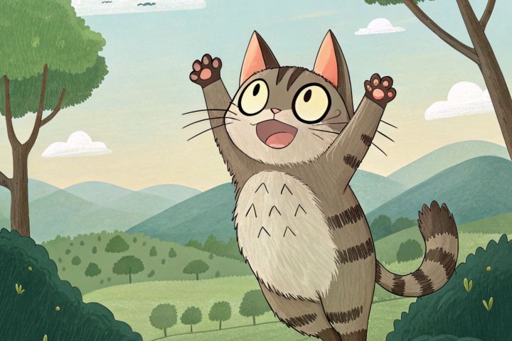 — Сегодня я буду прыгать! — воскликнул Макс, поднимая лапы вверх. — Потому что жизнь слишком коротка, чтобы тратить её на сомнения!