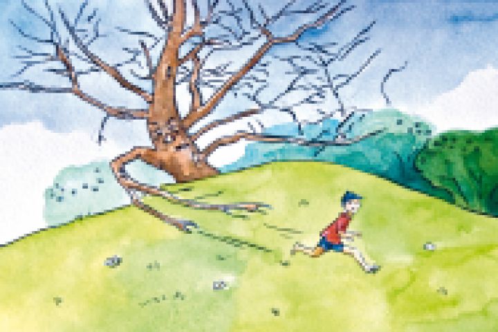 акварель, герой сталкивается с необычным и опасным существом, которое пытается его догнать. Сюжет из головы.