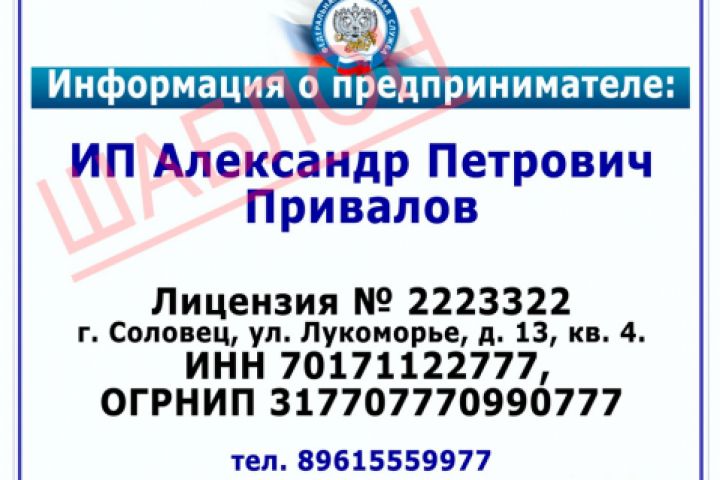 Информация о предпринимателе, наклейка для автобуса.