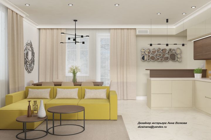 Дизайн кухни-гостиной в танхаузе