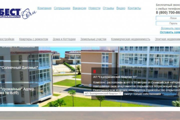 Сайт компании БЕСТ-Недвижимость г. Сочи. Частная и коммерческая недвижимость.