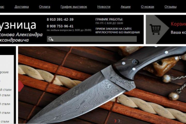 Веб-сайт частной кузницы ножей эксклюзивной ручной работы.