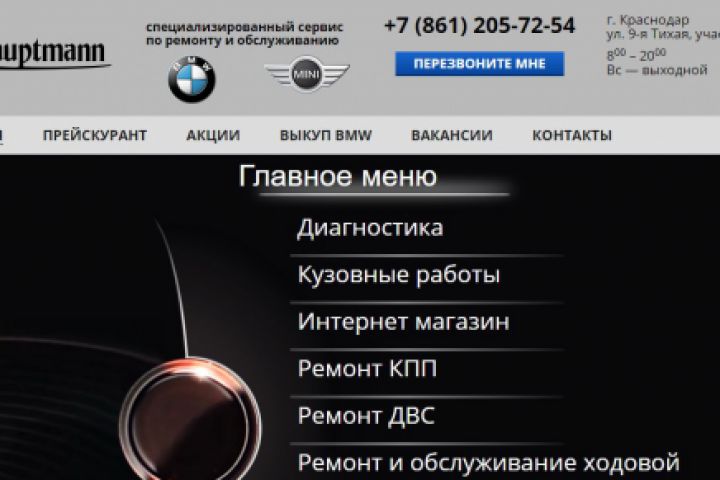 Сайт компании Hauptmann-специализированного сервиса по ремонту и обслуживанию автомобилей