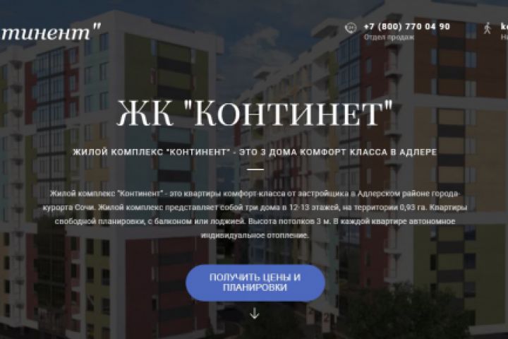 Landing Page ЖК "Континент"