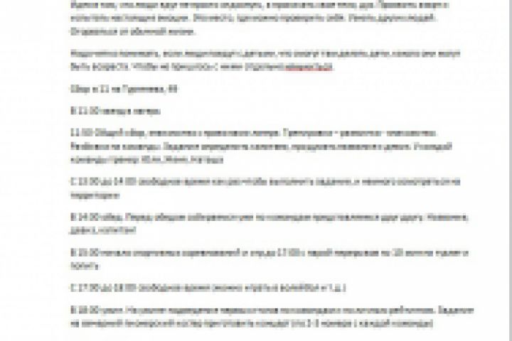 В примере представлен самый первый черновик-набросок мероприятия. Сам сценарий не могу показать, т.к. клиент запретил афишировать текст.