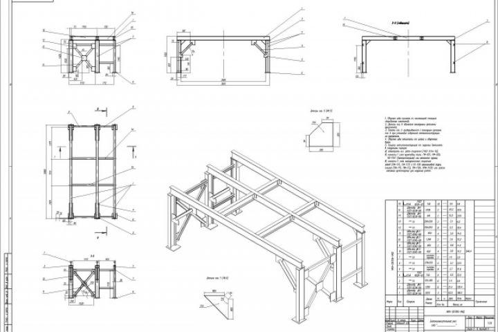 Проект несущей металлоконструкции смесителя. Модель в SolidWorks, чертежи в autocad.