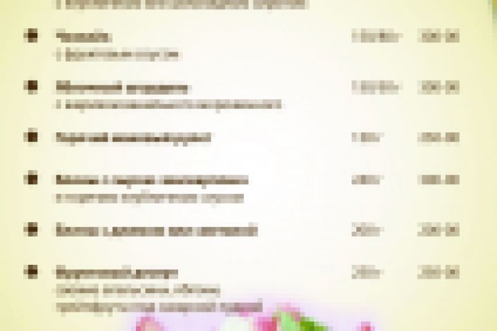 Основное меню для ресторана в спортивном клубе "Витаспорт"