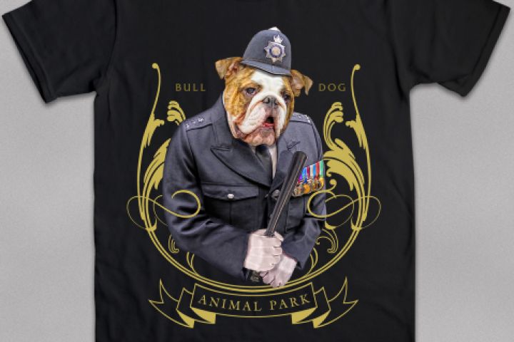 футболка Valenki Forever, футболка в подарок, авторский принт, бульдог, футболка с бульдогом, бульдог-полисмен, футболка с собакой