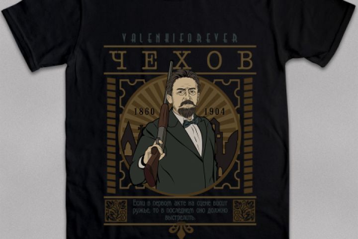 патриотическая футболка россия, футболка Valenki Forever, футболка в подарок, авторский принт, Антон Чехов, футболка с Чеховым