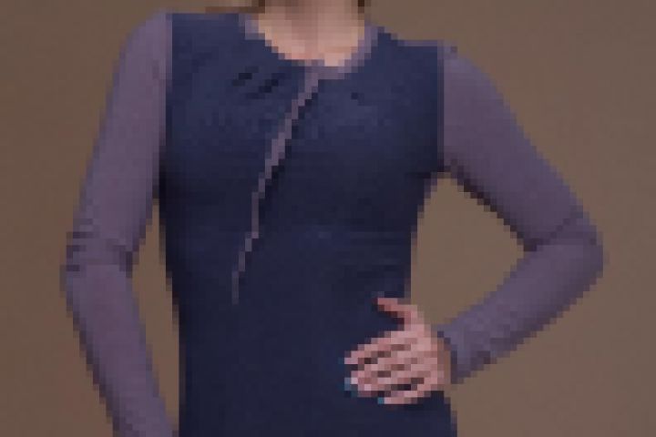 Утонченная женственная блуза из мягкого трикотажа сочетает в себе не только оригинальное цветовое решение, выгодно подчеркивающее силуэт, но также и достаточно необычное декорирование в области горловины. Трикотаж очень приятен к телу. Глубокий синий цвет очень выгодно сочетается со спокойным сиреневым. Тонкие вытачки позволяют блузе выгодно подчеркнуть фигуру. Нежные мягкие складки, расположенные близко к лицу, придают образу романтичное настроение. Такая блуза подойдет как для романтических, так и для деловых встреч.