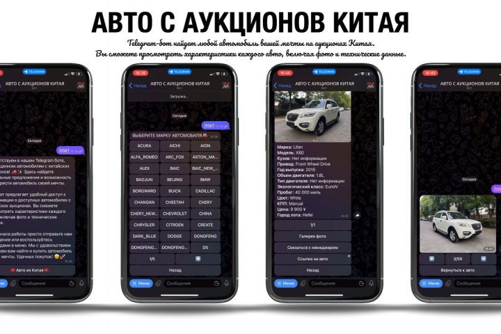 Telegram-бот, позволяющий искать автомобили на аукционах Китая Написан на языке Python Стоимость: 650 $