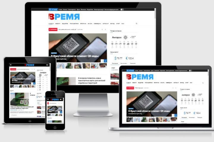 Портал издательства газеты "Время" на WordpRess в светлой и темной темах.