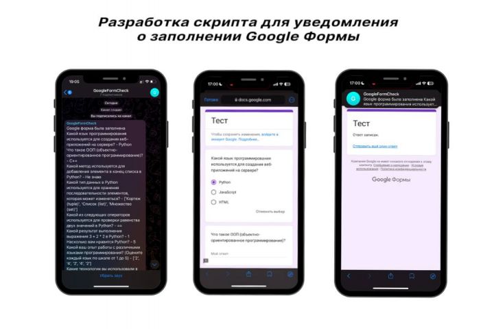 После заполнения Google Form уведомления автоматически отправляются на закрытый канал Telegram, предоставляя мгновенные обновления о новых заявках. Стоимость: 300 $