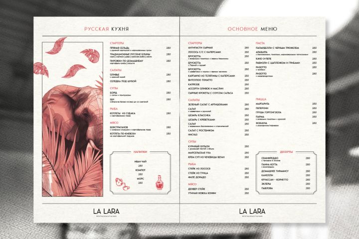 меню для ресторана