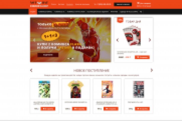 Интернет-магазин комиксов и аксессуаров выполнен в "воздушном" дизайне, стилистика: Material design.