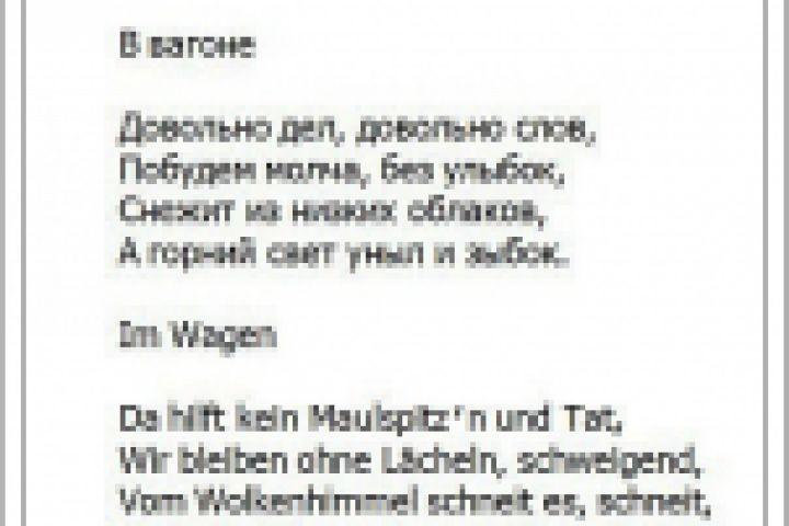 Перевод с русского на немецкий первого четверостишия стихотворения Иннокентия Анненского "В вагоне".