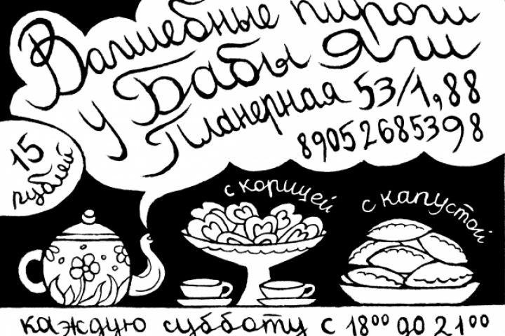 Рекламная листовка формата 15х21 нарисована полностью вручную.