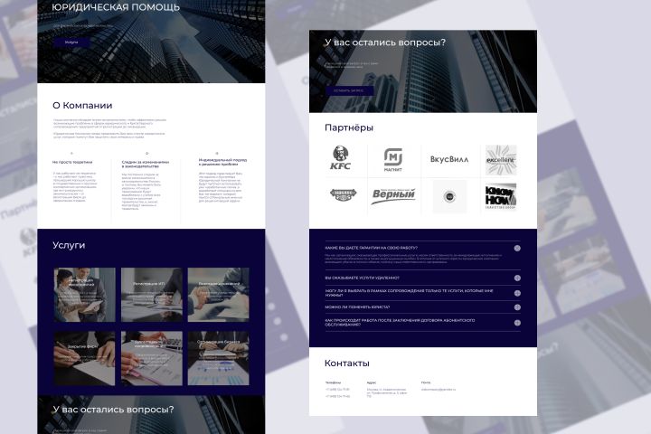 Заказчик обратился с целью создания сайта юридической компании. Важной деталью для него стало удобство и информативность сайта. Заранее было оговорено, что на сайте будет информация о компании, их услугах и конечно же, возможности оставить заявку