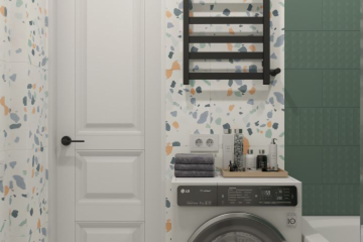 Яркий терраццо + оливковый цвет - прекрасное сочетание для ванной комнаты