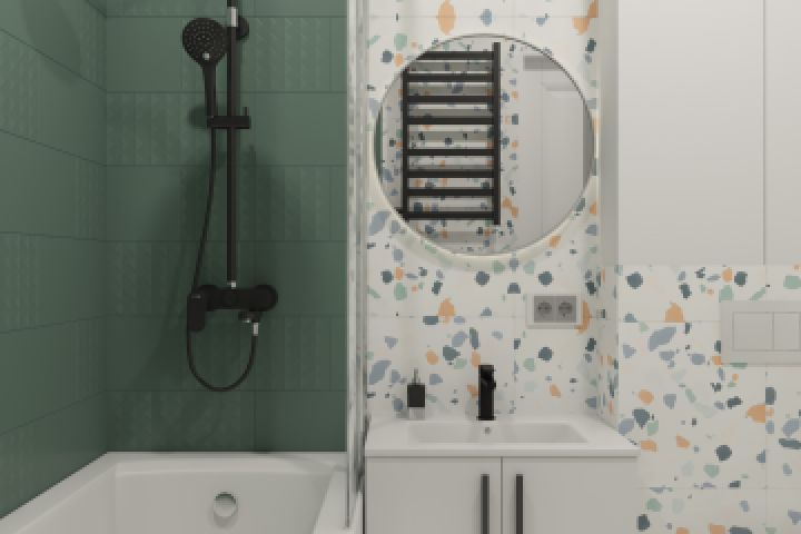 Яркий терраццо + оливковый цвет - прекрасное сочетание для ванной комнаты