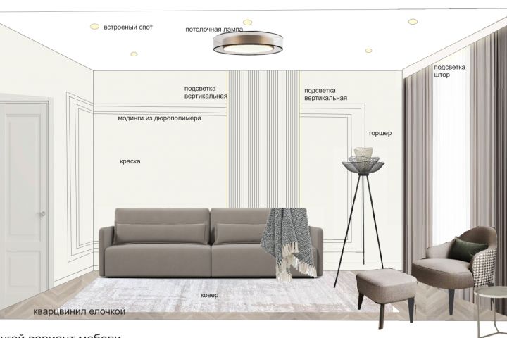 Отедка стен покараска + молдинги и панли из дюрополмера Пол - елочка ламинат